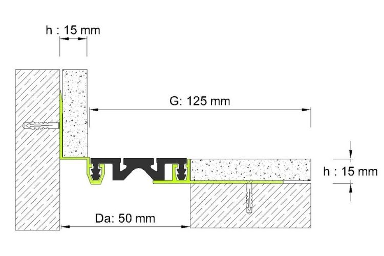 50 mm DİLATASYON BOŞLUKLARI İÇİN, YAYA GEÇİŞİNE UYGUN, SERAMİK KAPLAMAYA UYGUN ZEMİN DİLATASYON PROFİLİ