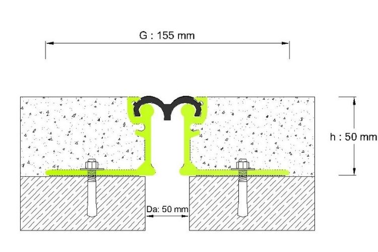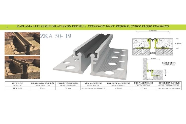 50 mm DİLATASYON BOŞLUKLARI İÇİN KAPLAMA ALTI AĞIR YÜK ZEMİN DİLATASYON PROFİLİ
