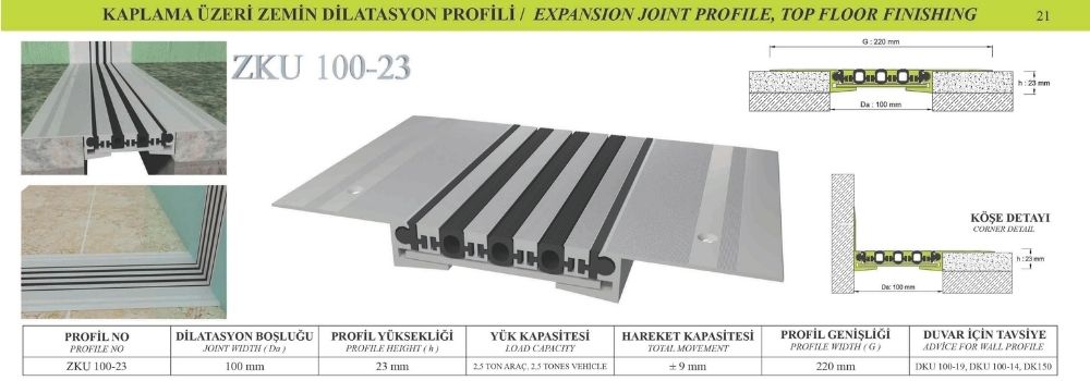 100 mm DİLATASYON BOŞLUKLARI İÇİNKAPLAMA ÜZERİ ZEMİN DİLATASYON PROFİL