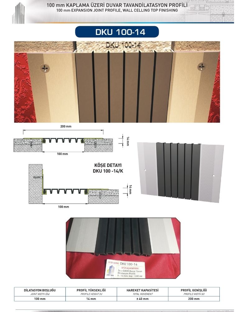 100 mm DİLATASYON BOŞLUKLARI İÇİN SIVA ÜZERİ DUVAR TAVAN DİLATASYON PROFİLİ