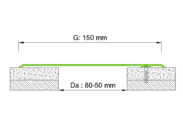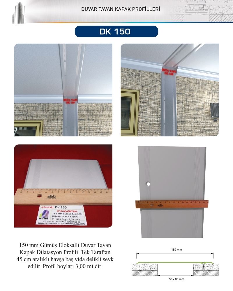 200 mm GENİŞLİĞİNDE GÜMÜŞ ELOKSALLLİ, HAVŞA BAŞ VİDA DELİKLİ DUVAR TAVAN VE DIŞ CEPHE KAPAK DİLATASYON PROFİLİ