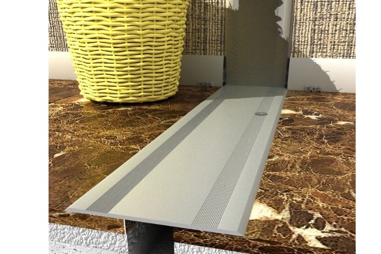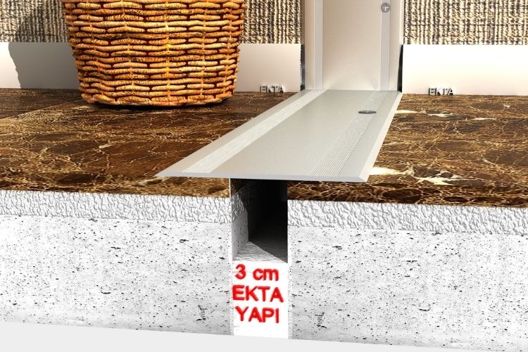 120 mm GENİŞLİĞİNDE GÜMÜŞ ELOKSALLLİ, HAVŞA BAŞ VİDA DELİKLİ ZEMİN KAPAK DİLATASYON PROFİLİ