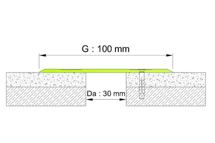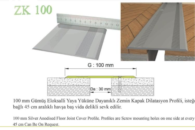 100 mm GENİŞLİĞİNDE GÜMÜŞ ELOKSALLLİ, HAVŞA BAŞ VİDA DELİKLİ ZEMİN KAPAK DİLATASYON PROFİLİ