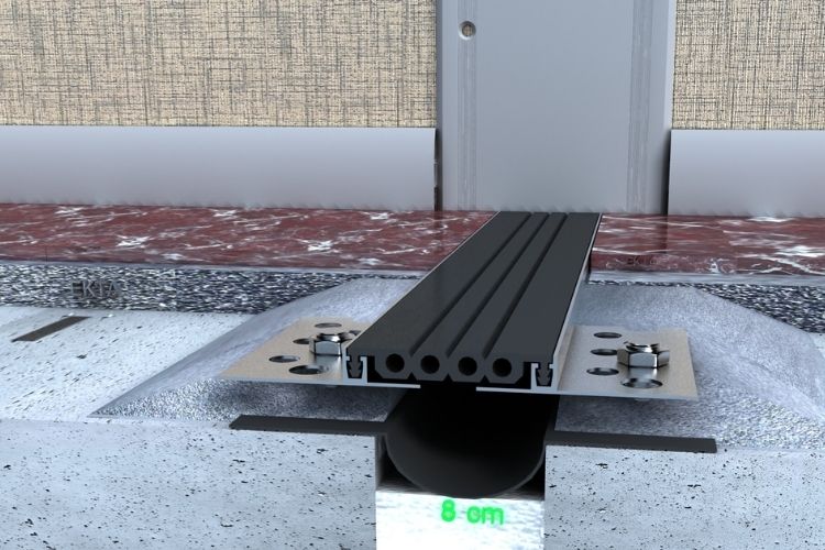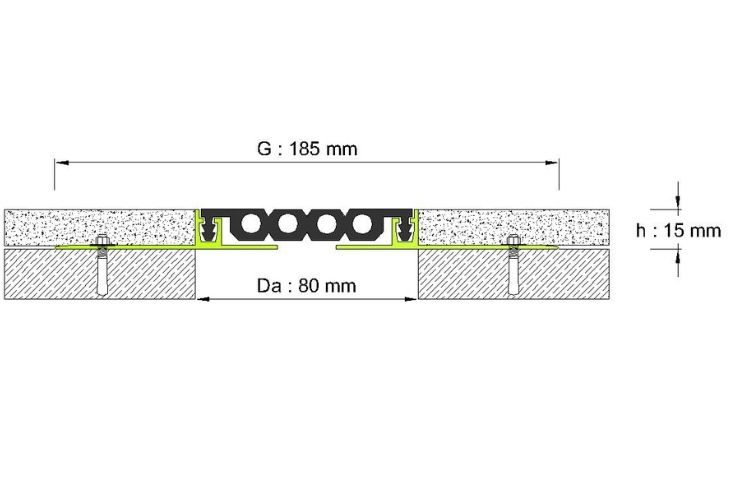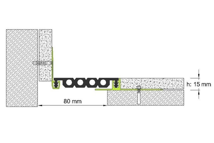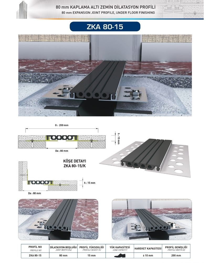 80 mm DİLATASYON BOŞLUKLARI İÇİN, 15 mm YÜKSEKLİĞİNDE KAPLAMA ALTI ZEMİN DİLATASYON PROFİLİ