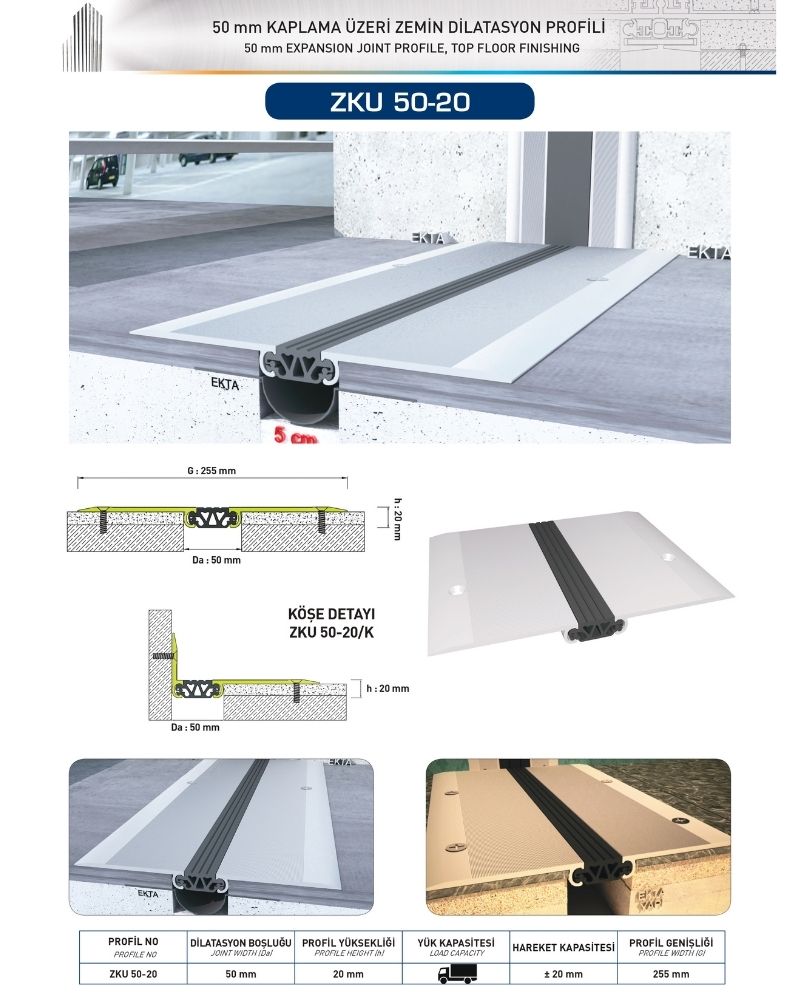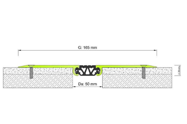 50 mm DİLATASYON BOŞLUKLARI İÇİN, KAPLAMA ÜZERİ AĞIR YÜK ZEMİN DİLATASYON PROFİLİ