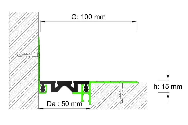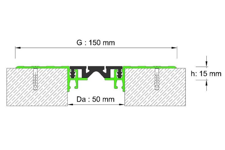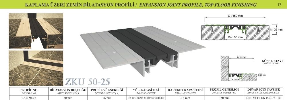 50 mm DİLATASYON BOŞLUKLARI İÇİN, GENİŞ KANATLI, AĞIR YÜK KAPLAMA ÜZERİ ZEMİN DİLATASYON PROFİLİ